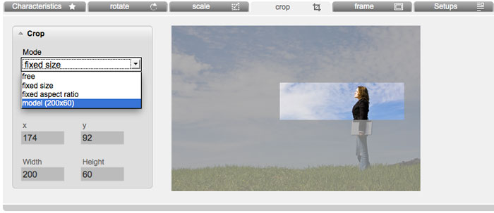 Crop: Here you can adapt the size of your image. You have got three possibilities: