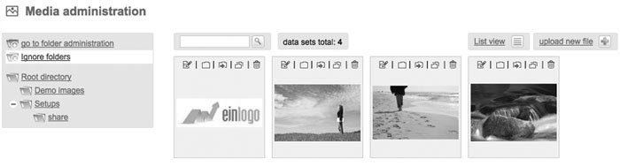 Here you can see all your uploaded files. You can chose between listview or thumbnail view.